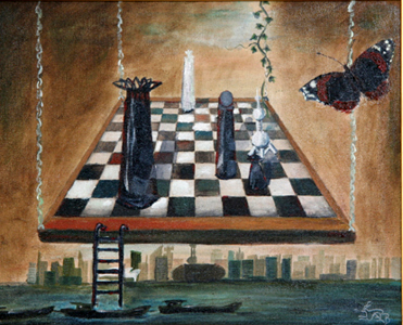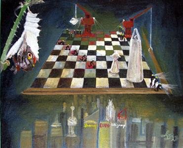 Als die Künstlerin 2003 in Shanghai ankam, war die Skyline der Metropole noch überschaubar. Es gab sehr viele fantastische Hochhäuser. Sie überragten die alten Stadtviertel wie Schachfiguren auf einem Schachbrett. Im Laufe der knapp 5 Jahre hat sich das Stadtbild total verändert. Es wurden soviele Skyskraper gebaut, dass das einzelne Gebäude in der Masse untergeht. Schade, denn jeder Turm ist besonders schön. Das war der erste äußerliche Eindruck, der auf das Schachmotiv hinwies.